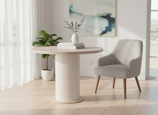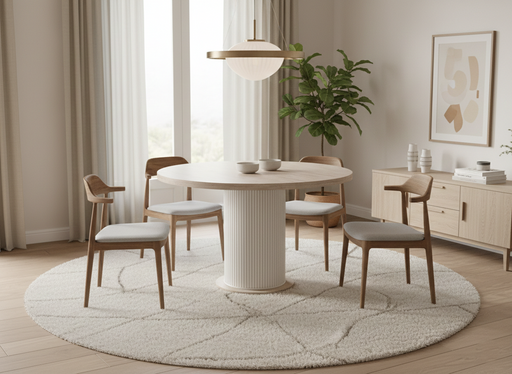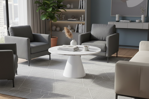Yuvarlak Açılır Traverten Masa – Modern & Fonksiyonel Doğal traverten görünümlü tablası ve sağlam metal ayak tasarımıyla yaşam alanlarına zaraf...