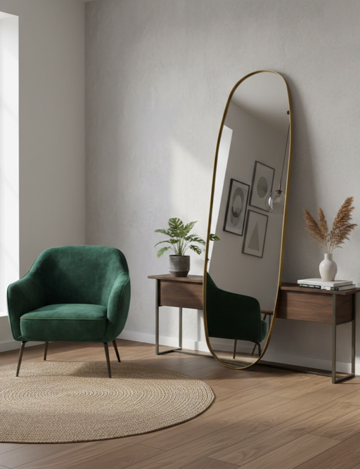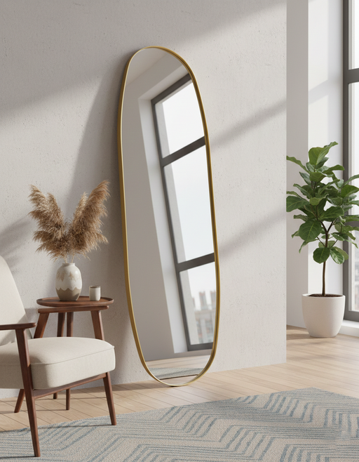 Sven Altın Çerçeveli Duvara Dayalı Ayna – Organik Formda Modern Işıltı \nSven modeli, yumuşak hatları ve dikkat çekici altın çerçevesiyle bulunduğu...